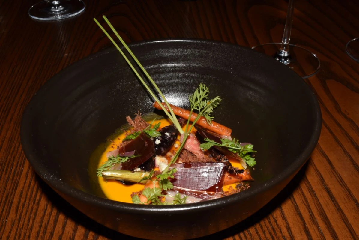 Alcocer mostró la esencia del restaurante, fiel a su concepto, representó a Valle de Guadalupe, con unas zanahorias baby, con jerez y lajas de Cinco Jotas. La Rioja siguió con la etiqueta Monty Viura.