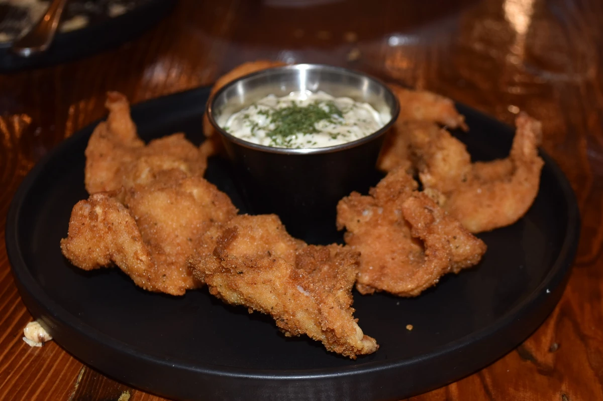 Camarones empanizados con salsa tártara, el empanizado se realiza con una mezcla especial de la casa